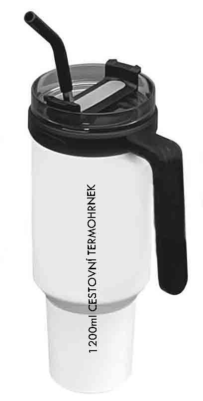CESTOVNÍ NEREZOVÝ TERMOHRNEK 1200ml / BÍLÝ - ČERNÝ Průměr 102 / výška 260mm bez víčka, s víčkem 275mm