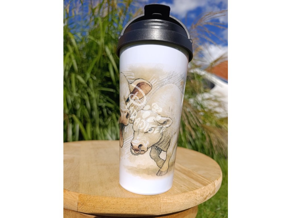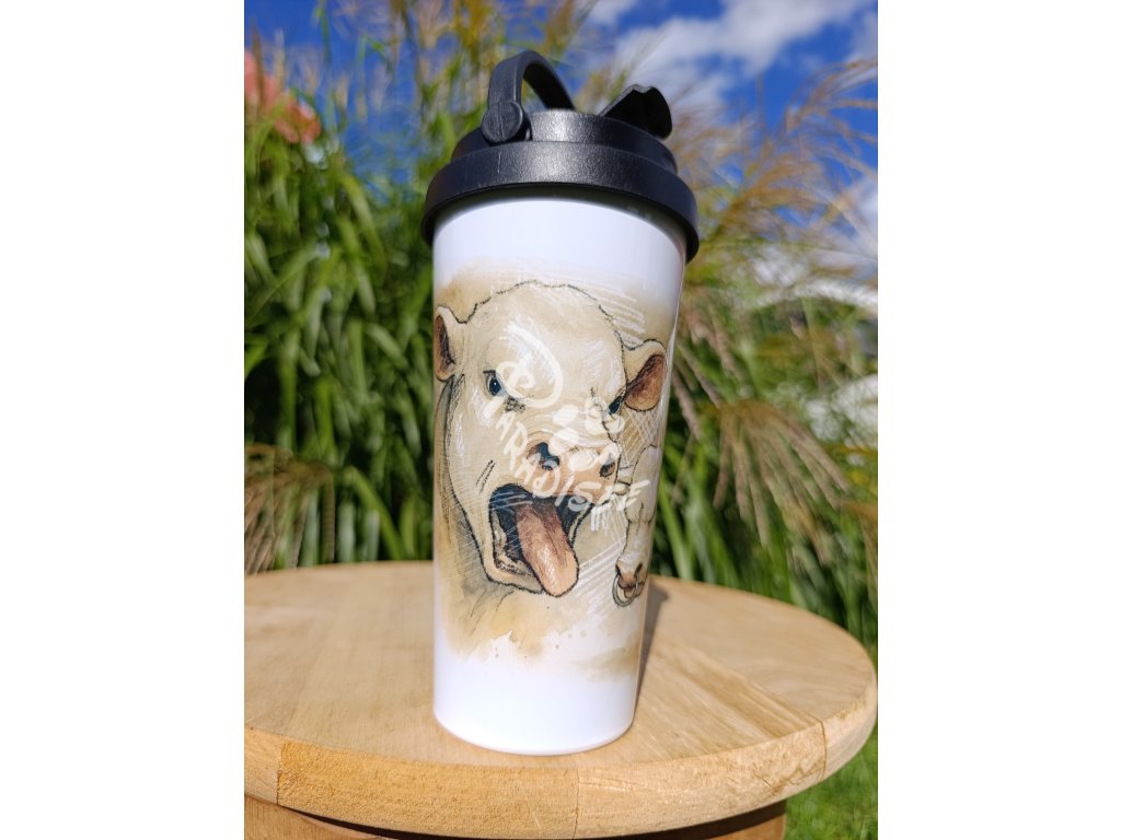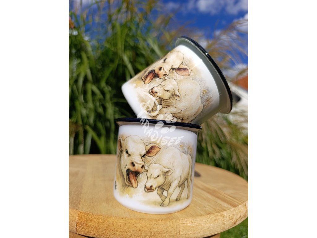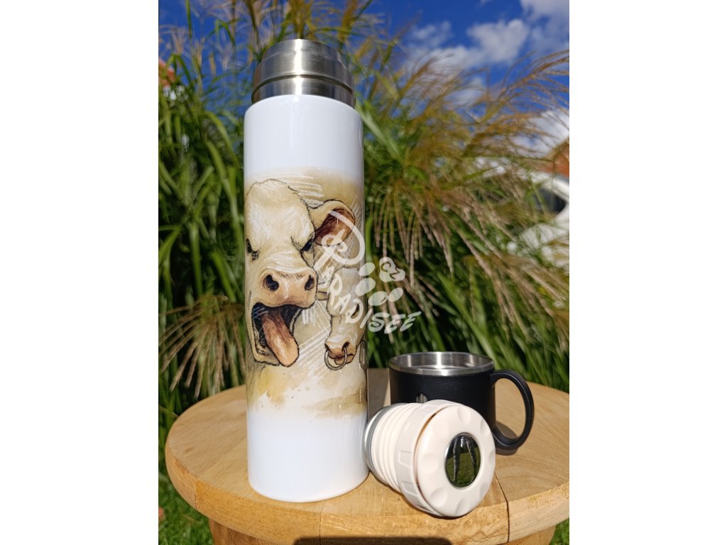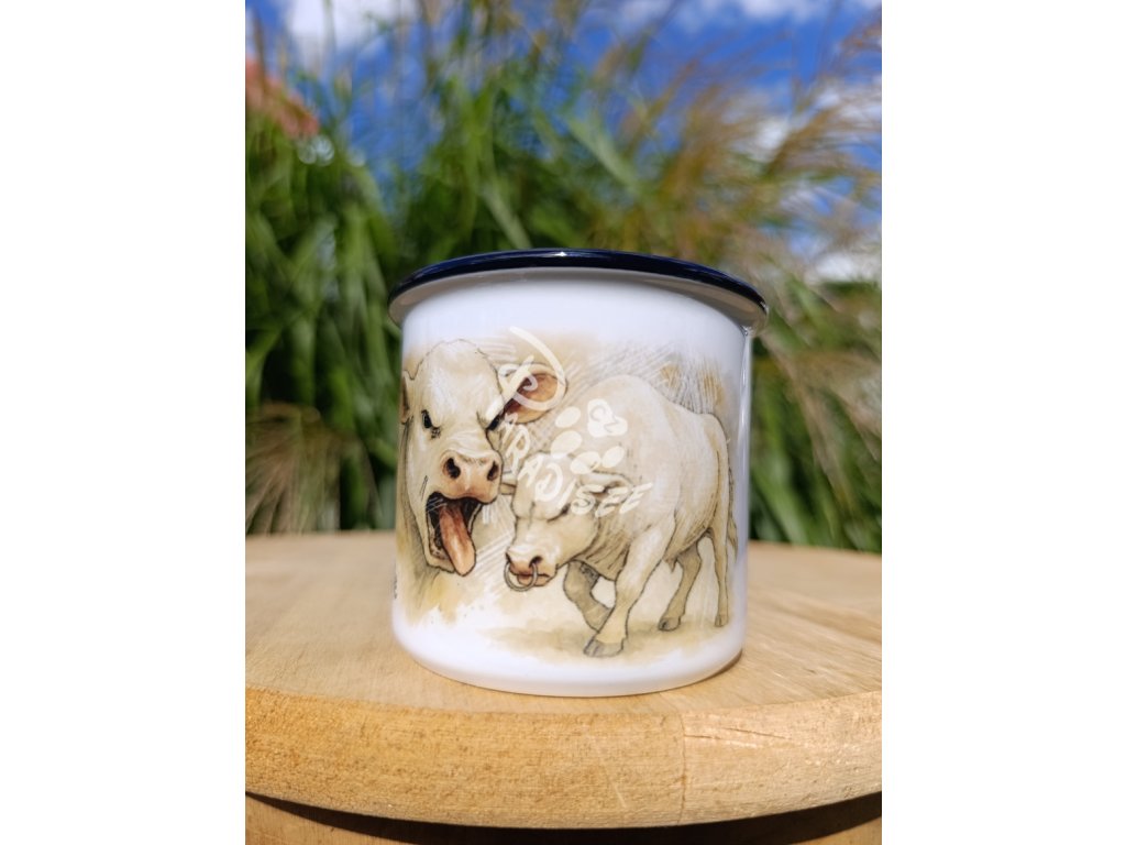 CHAROLAIS býk - termoska a termohrnek, hrnek - keramický a smaltový, panáková sklenka