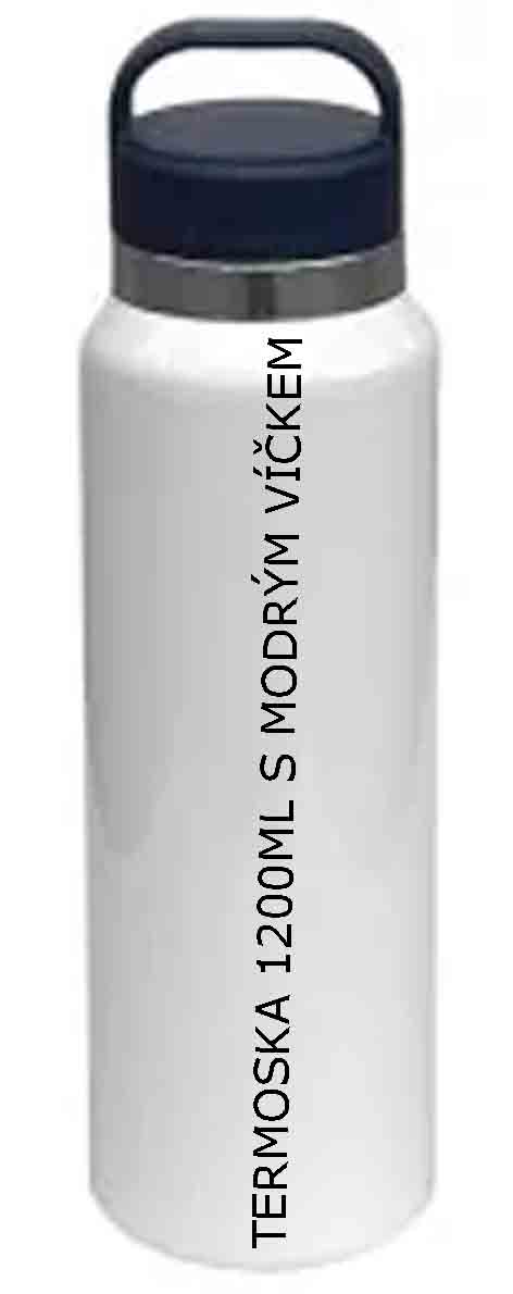 TERMOSKA BÍLÁ S MODRÝM UZÁVĚREM 1000ml Průměr 84 / výška 292 mm, Objem 34 oz cca 1000ml / hmotnost 430g