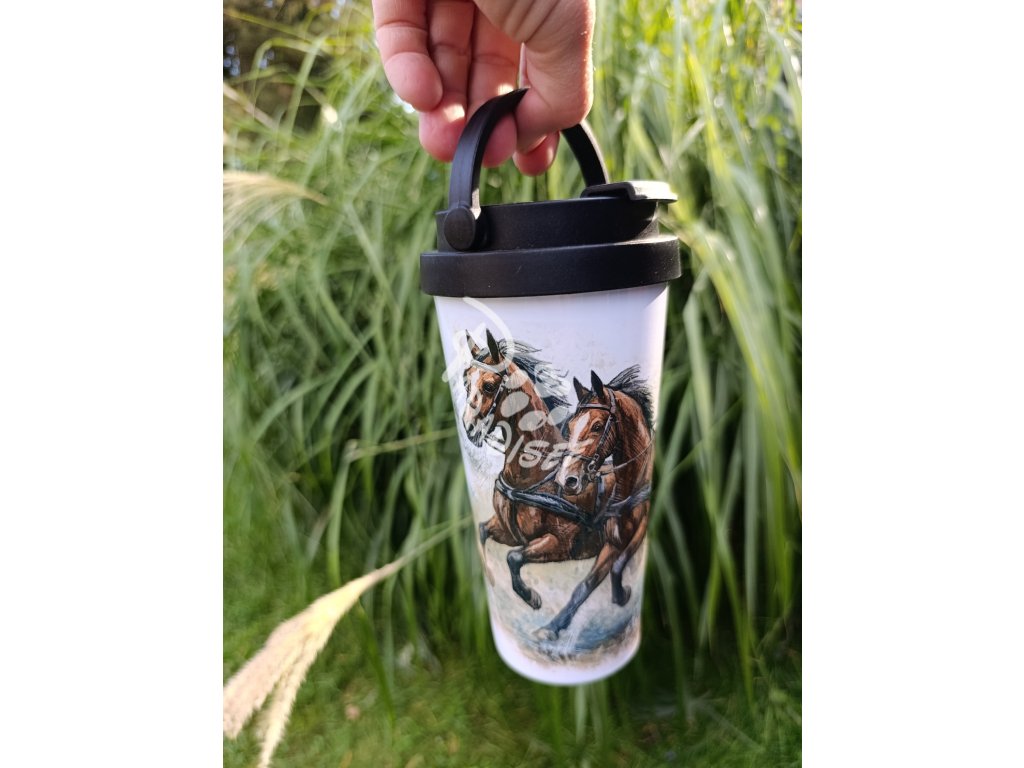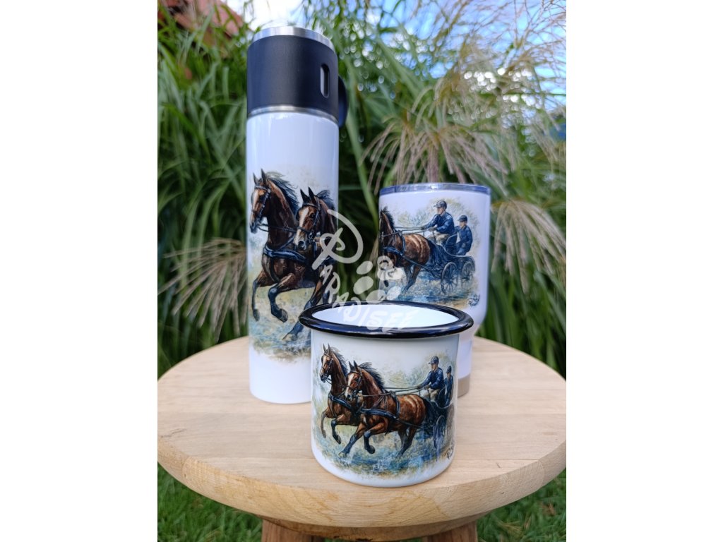 Koně s MARATONKOU (kůň) - termoska a termohrnek, hrnek - keramický a smaltový, panáková sklenka