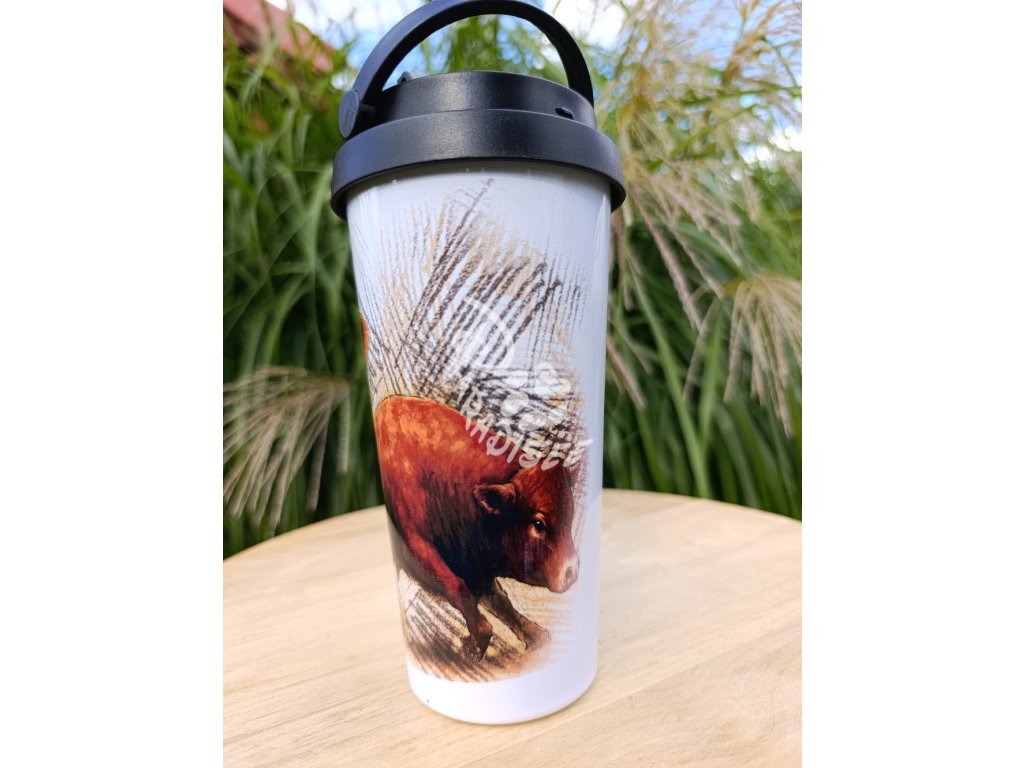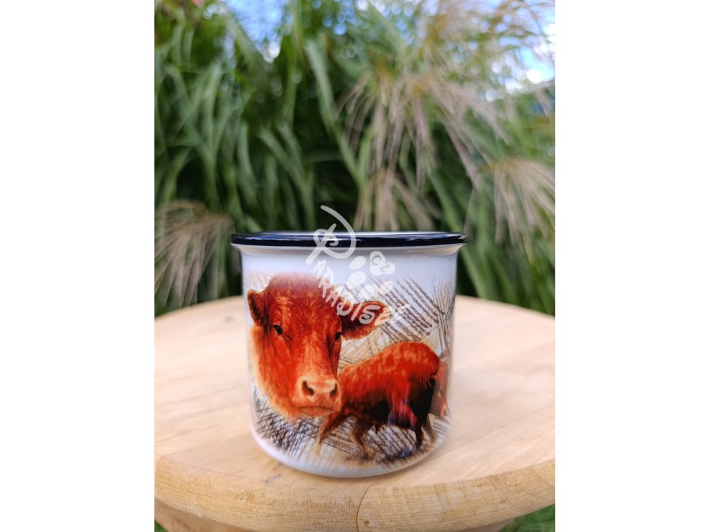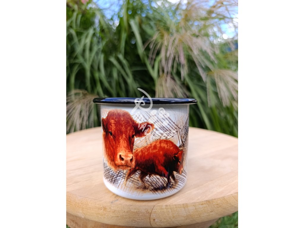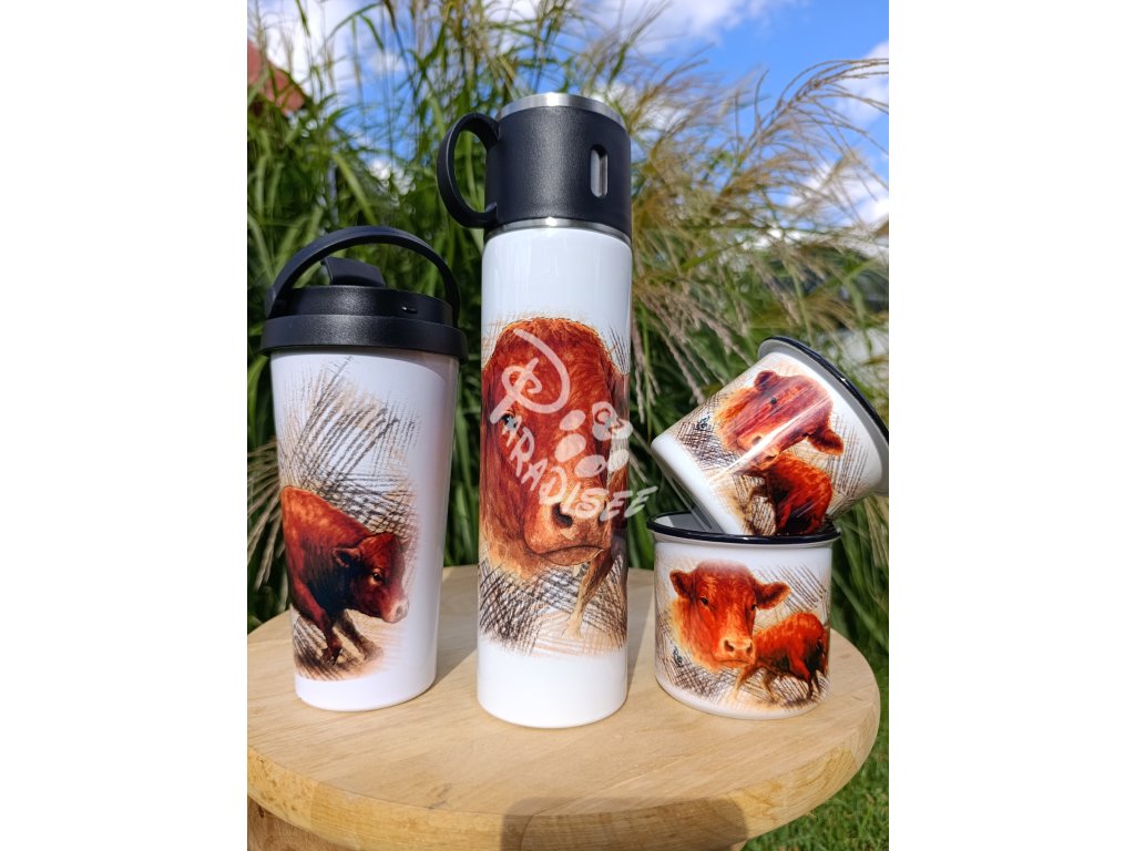 LIMOUSINE býk - termoska a termohrnek, hrnek - keramický a smaltový, panáková sklenka