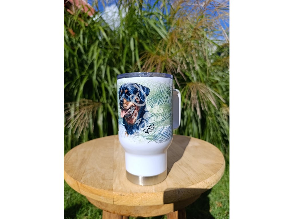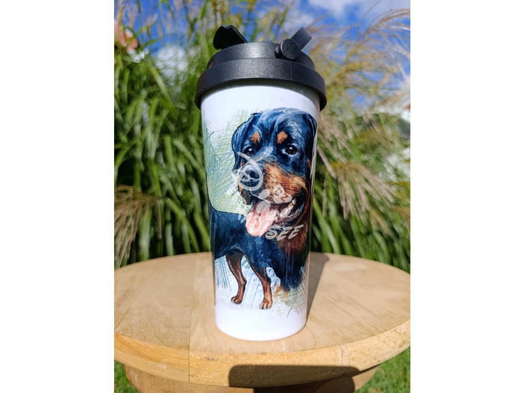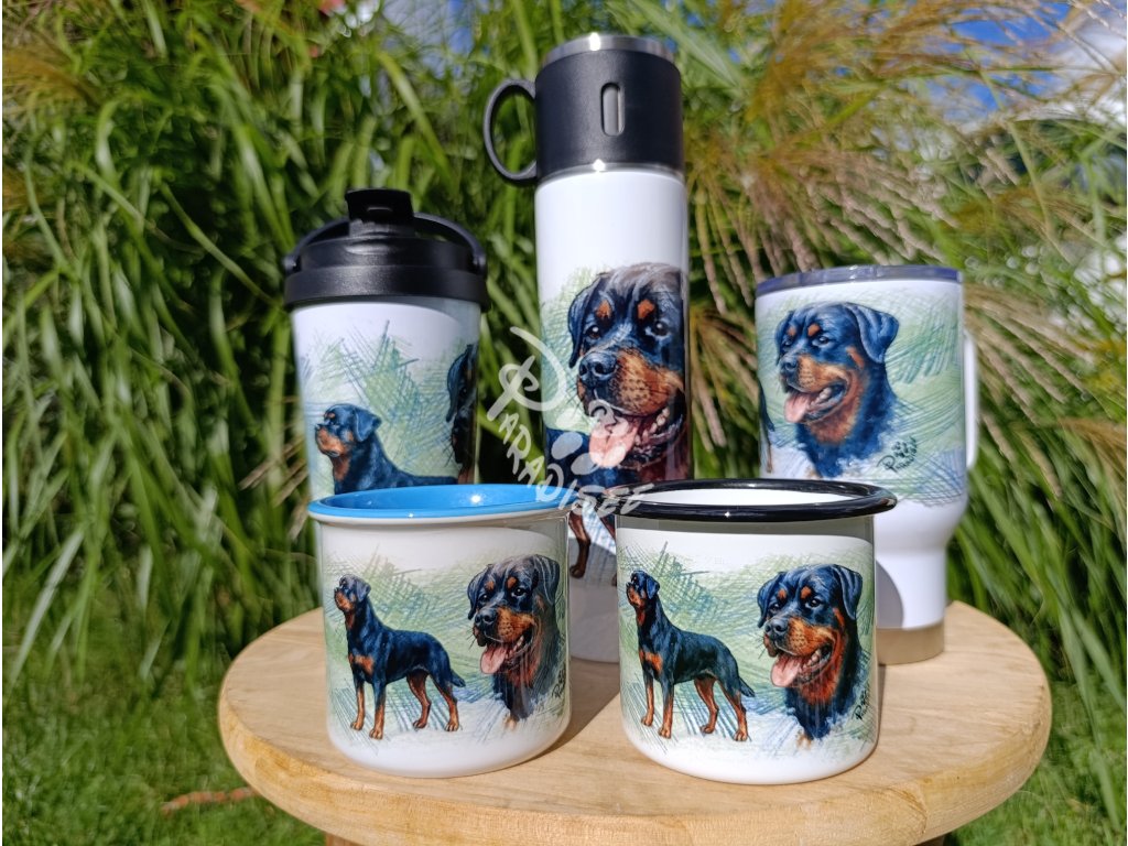 ROTVAJLER (pes) - termoska a termohrnek, hrnek - keramický a smaltový, panáková sklenka