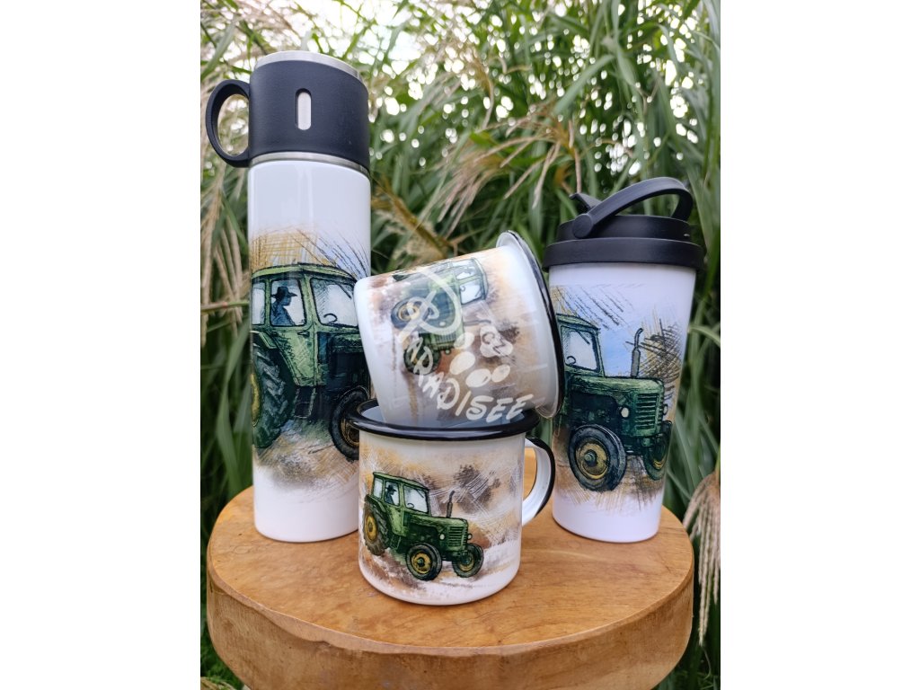 ZETOR ZELENÝ 50 super (traktor) - termoska a termohrnek, hrnek - keramický a smaltový, panáková sklenka
